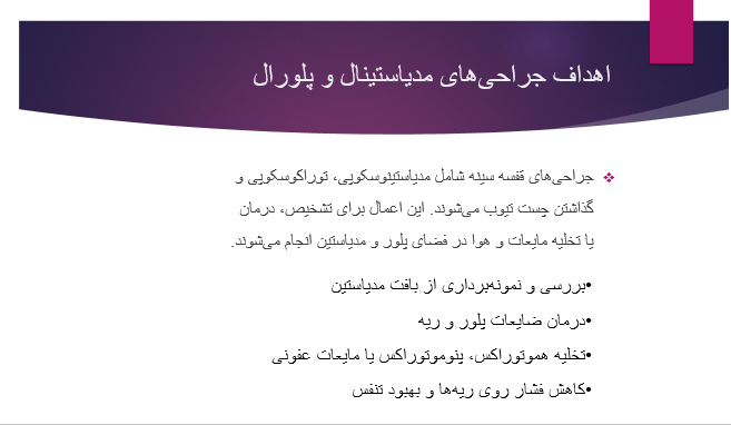 جراحی های مدیاستینوسکوپی ،توراکوسکوپی،گذاشتن چست تیوب و مراقبتهای قبل و حین و بعد از جراحی و وظایف سیرکولر و اسکراب