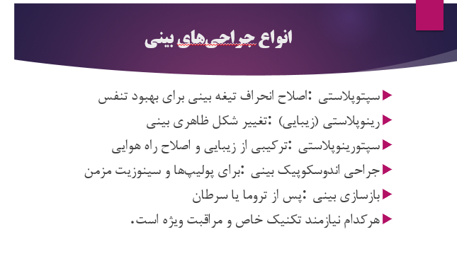 جراحی های بینی: اندیکاسیون‌ها، روش‌ها و مراقبت‌های پرستاری
