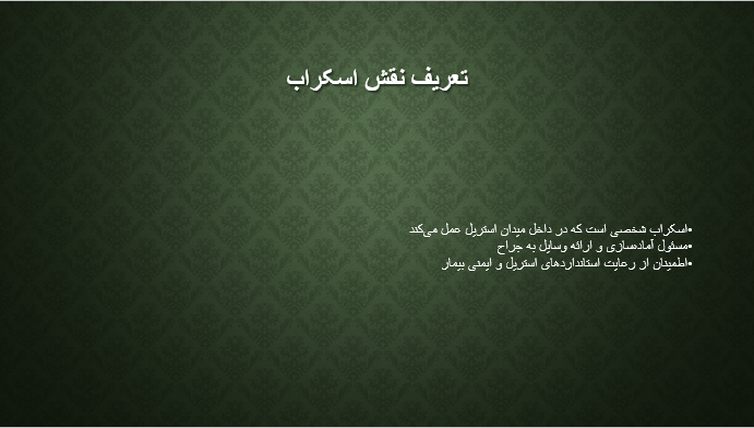 اشنایی فرد اسکراب با وظایف محوله در دوره جراحی ،در نقش اسکراب اول و دوم